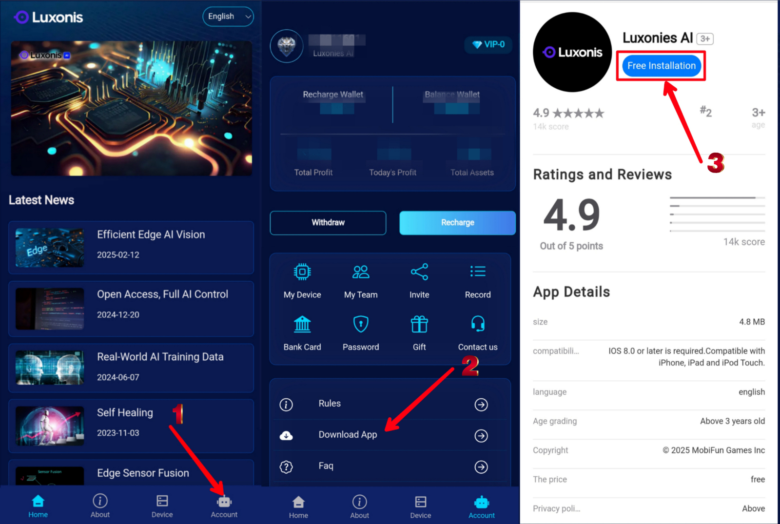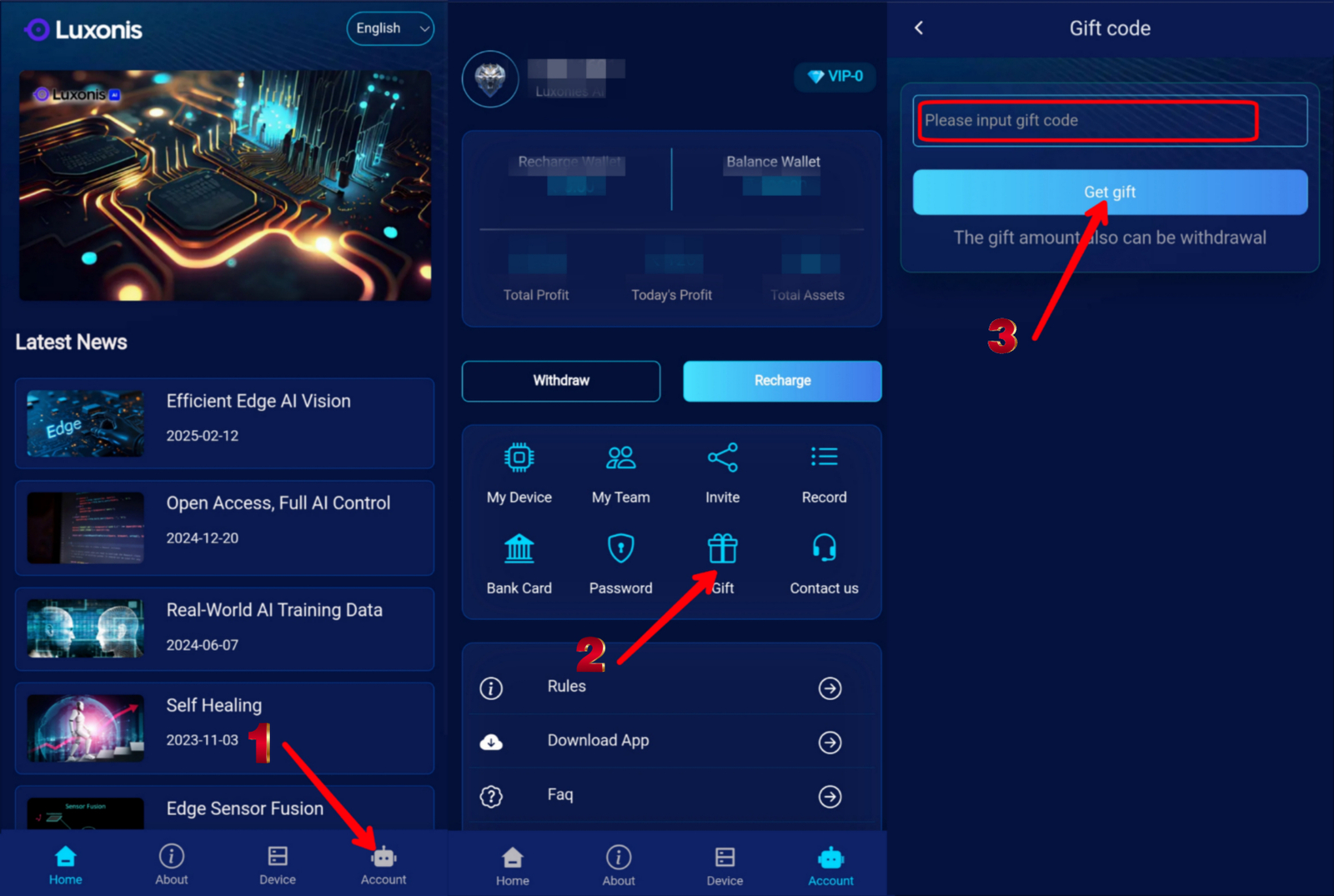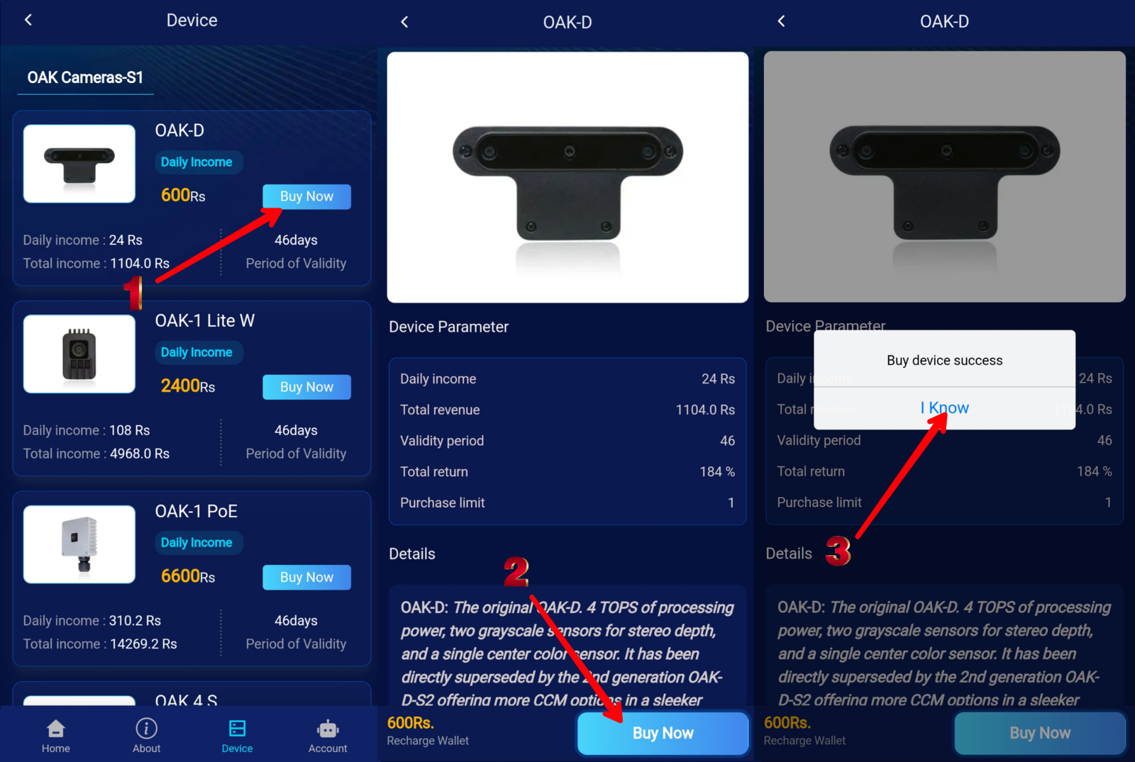 The first thing you do every day on Luxonis is to log into your account and collect your device's profit.