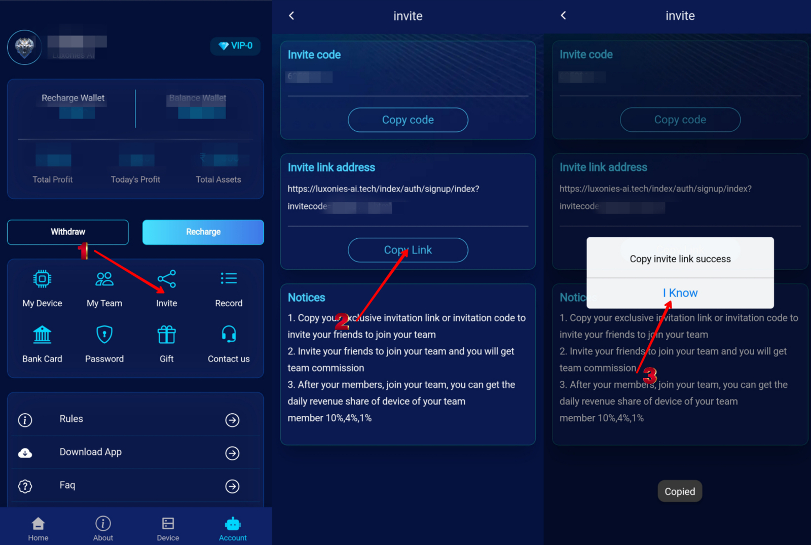 Invite new members via your invite link or invite code and get rewards!
